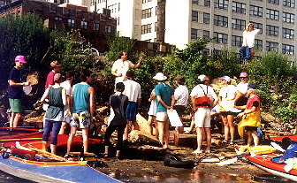 Industry around New York Harbor is on the wane. What remains includes the pilings of the old wharfs, old photographs, and movies reflecting an earlier life on the waterfront. What has also gone is much of the pollution manufacturing contributed to the harbor. Although still a problem, harbor pollution has decreased over the past twenty years. I was surprised by the cleanliness of the water that we paddled through. I had almost expected acid would eat through my kayak. In fact, except for a few stretches of the Harlem River, I saw very little floating debris and was not overwhelmed with any smell. With newly constructed sewage treatment plants, water skimmers and the harbor’s natural tidal cleansing cycle, I found it a pleasure to be out on the waters of the harbor.