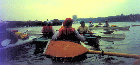We had already paddled twenty miles around this island thick with concrete, glass and steel-all this in our seventy-five-pound crafts of canvas, rubber, and wood. Ten miles to go. But now the first drops of heavy rain began slamming into the grey river around us; a cacophony of sound much like falling marbles against slate.